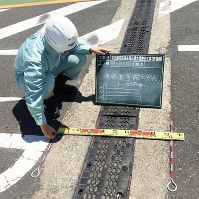 作業の前に実際の橋の長さや幅を測ります。測った場所は写真を撮って記録していきます。