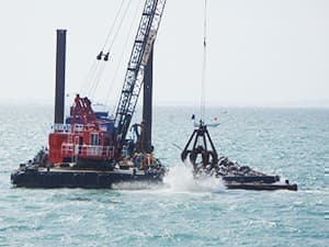グラブ床掘工 V=74,600m³ グラブしゅんせつ工 V= 5,131m³ |