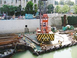 構造物撤去工 起重機船・ワイヤソー・フラットソー・コア削孔 鋼管杭引抜 一式 |
