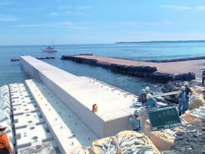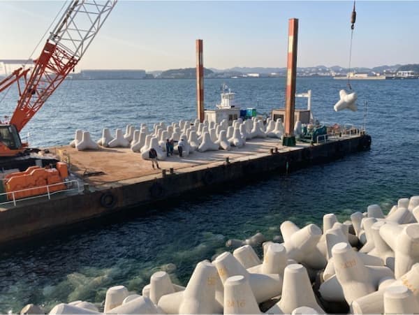 | 工事概要 | 異形消波ブロック据付工 N=8,000個 |