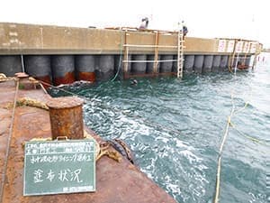 | コメント | 大型船舶の衝突等により損傷した防舷材の製作・設置・移設を実施し接岸時の安全確保を図りました。 |
